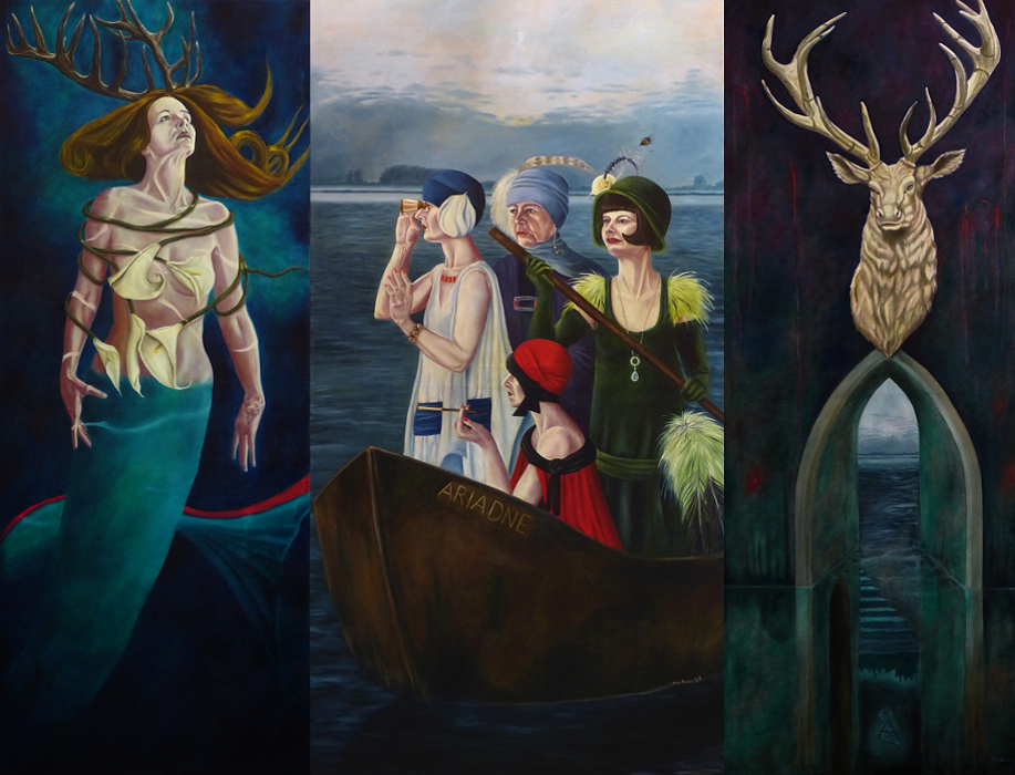 Öl auf Leinen, 150 x 60, 150 x 80, 150 x 60 cm
